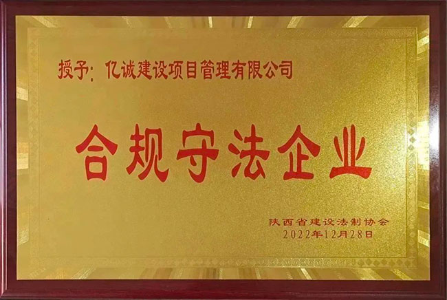 2023年1月30日,陜西建設法制協會公布了《關于2022年度會員單位合規守法企業評選結果的通知》,億誠建設項目管理有限公司榮獲“2022年度合規守法企業”稱號。