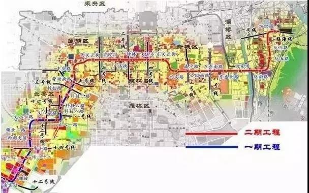 地鐵六號線一期工程起于南客站(位于規劃國鐵南客站北側),線路沿興隆一路、西太路、亞迪路、 錦業路、唐延路、高新路敷設,在科技路站與三號線換乘后,止于勞動南路并與五號線換乘,全長20.13千米,設15座車站,計劃今年累計8座車站封頂;