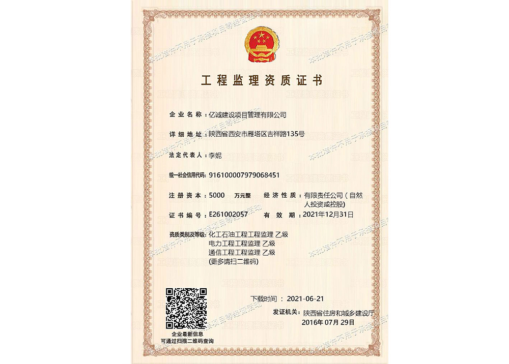 YICHENG SUPERVISION QUALIFICATION CERTIFICATE